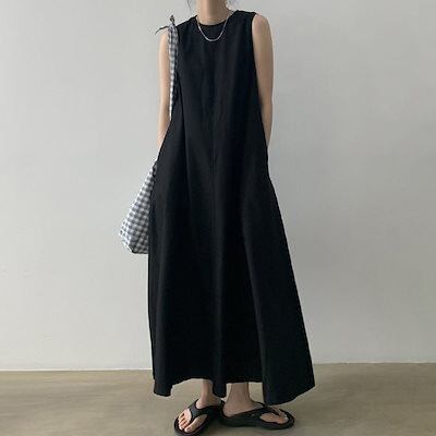 ワンピース 韓国chicクルーネックゆったりロング丈ひざ丈タンクトップワンピースロングスカート ドレス レディース