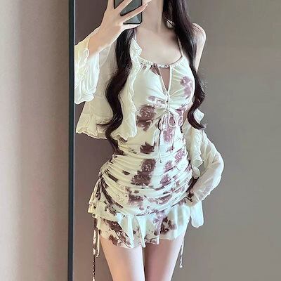 【3日以内出荷】水着 レディース 競泳 水泳スカート風ブラウスで痩せ見え腹部隠しセクシー温泉水着 ワンピース 体型カバー 韓国ファッション