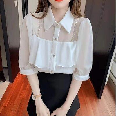 【3日以内出荷】今っぽシアーシャツ 通勤 2024夏の新作シフォンシャツ着痩せシャツ半袖シャツ トップスレディース 韓国ファッション