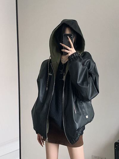 アウター ジャケット 春と秋のレトロアメリカンなけだるさ感pu皮野球服男女ストリートスポーツカジュアルフードコート レディース 韓国ファッション