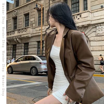 アウター INSレザースーツジャケットゆったりOVERSIZEジャケットPU皮気質レトロ機関車服 レディース 韓国ファッション