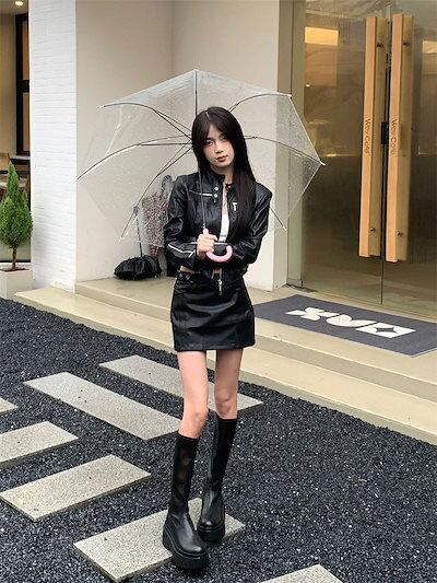 アウター アメリカンギャルはレトロな機関車のショート丈のレザージャケットを着る2024春のトップス レディース 韓国ファッション