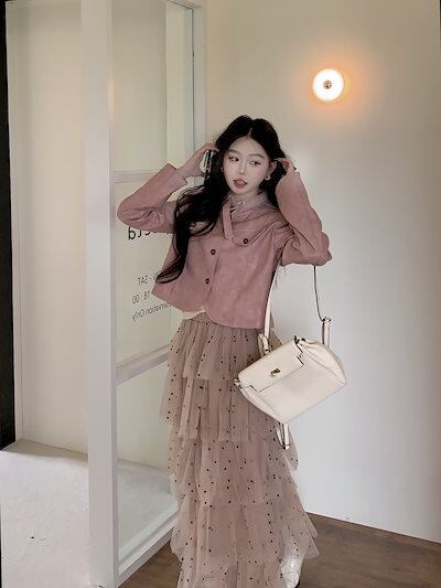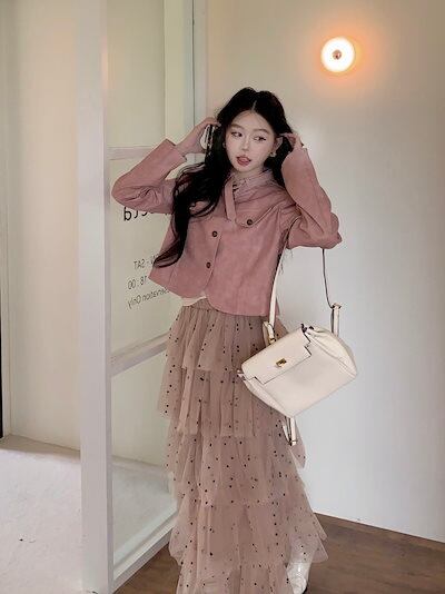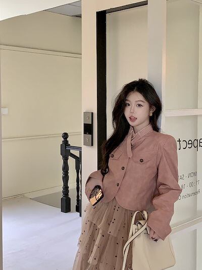 アウター ピンクのレザージャケット2024春のアメリカンレトロ気品機関車ジャケットトップス レディース 韓国ファッション
