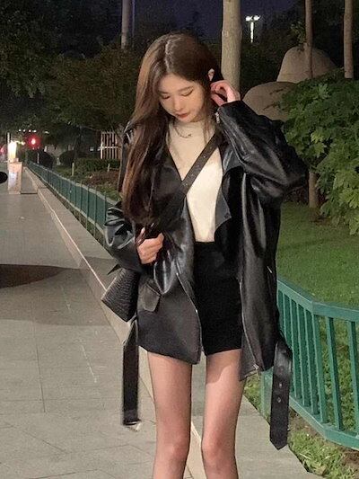アウター ブラックPUレザー2024春の新作アメリカンレトロなデザイン感ショート丈機関車服ジャケット レディース 韓国ファッション