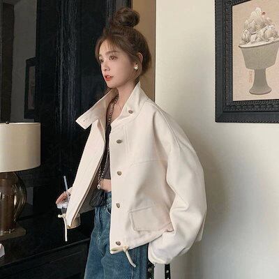 LA PELLEアウター 2024 春秋新作 クラッシュカラー ラペル ワークウェア カジュアル デザイン 通勤 ショート アウター レディース トップス 百掛け 韓国ファッション