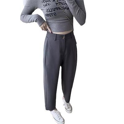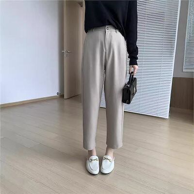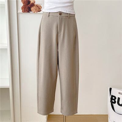 テーパードパンツ 2024 秋 カーキ スーツパンツ レディース ワイドルーズ ワイドパンツ ストレートパンツ 韓国