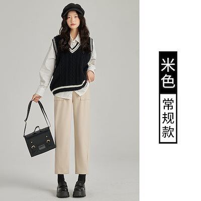 テーパードパンツ ツイード ズボン レディース 2024秋冬新作 ハイウエスト 薄手 キャロットパンツ ゆったり カジュアル ハーレクイン・パンツ 韓国