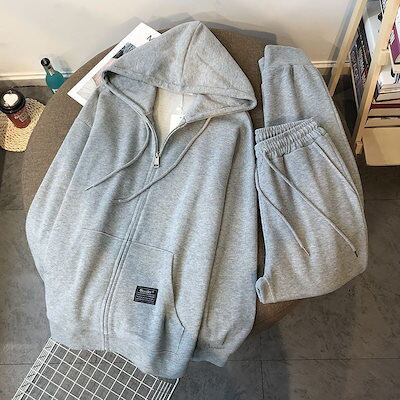 セットアップ 大きいサイズ カジュアル スポーツ スーツ 女性 春秋 韓国バージョン ゆったり 薄手部分 フード付き スウェットシャツ 2セット 韓国ファッション