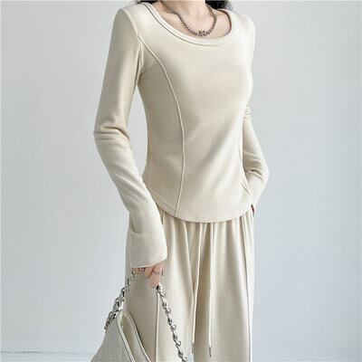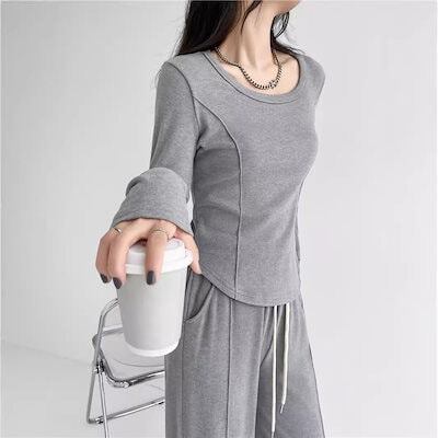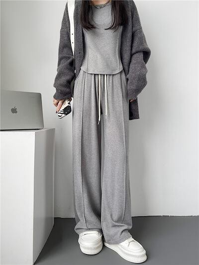 セットアップ 2024 のんびり 甘い 秋 長袖 ラウンドネック スーツ ゴム入り ワイドパンツ 韓国ファッション