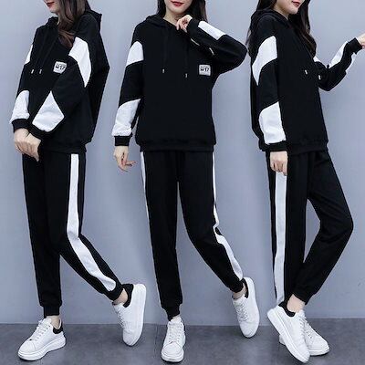 セットアップ 2024 秋と冬 新しいスタイル ゆったり 大きいサイズ 婦人服 スーツ カジュアル シンプル 薄手 肉 スポーツ 2セット 韓国ファッション