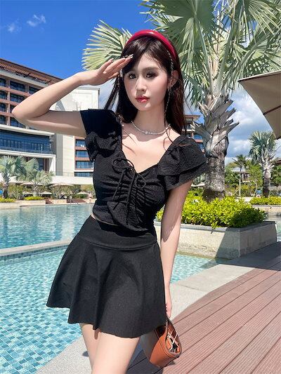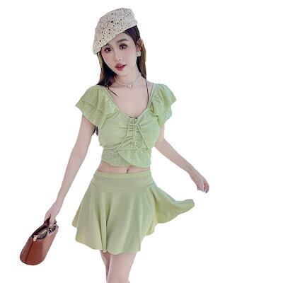 【3日以内出荷】水着 ワンピース 2024 スプリット ツーピース プレーン 半袖 ライトウェイト 休日 スパ 体型カバー 韓国