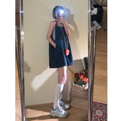 コーデ完成!サロペット 2024新しい女性の夏のショートパンツスキニーダークブルーデニムストラップパンツ 韓国ファッション