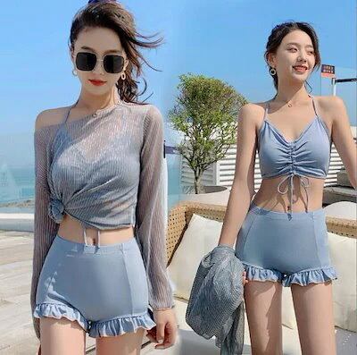 水陸両用 ワンピース 体型カバー 水着 ワンピース レディース 3点上下セット 大きいサイズ 可愛