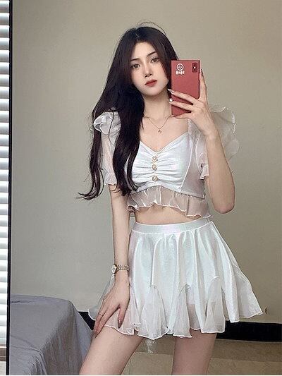 水着 レディース 着痩せ 激安水着 気沸騰水着 韓国ファッション 水着体型カバー 2点セット