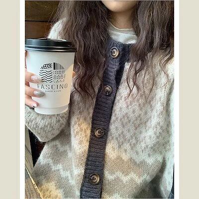 【 3日出荷 】カーディガン 2024 秋新カーディガン レディースファッション レトロな菱柄セーター秋のゆったりニットカーディガン ニットカーディガン アウター