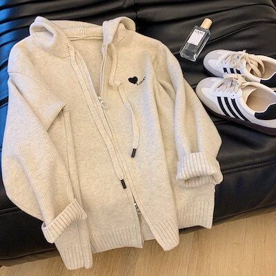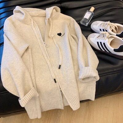 【 3日出荷 】カーディガン 2024 秋新韓国 ニットカーディガン 百掛け ゆったりファスナーセーターカーディガン秋キャップニットコート レディースファッション