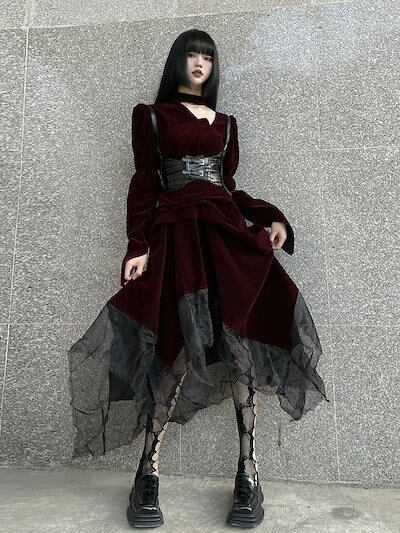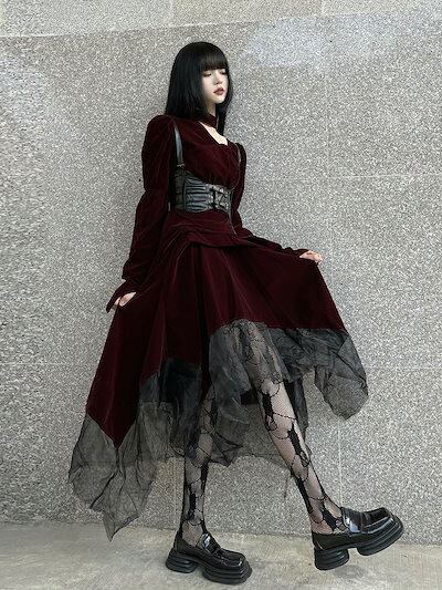 【 3日出荷 】ハロウィンコスプレ ロリータ 仮装 ダーク ゴシック ハロウィーン レース フィッシュテール ロングスリーブ ドレス ハロウィン衣装