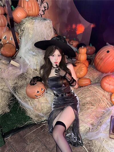 【 3日出荷 】ハロウィンコスプレ ロリータ 仮装 ブラック スリミング パッチワーク メッシュ サスペンダー ドレス ベルト ハロウィン衣装