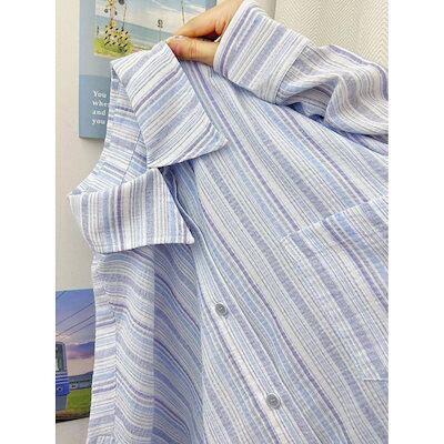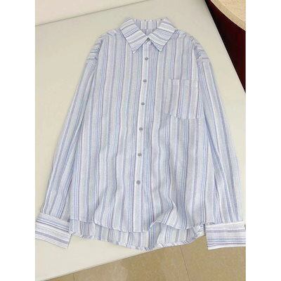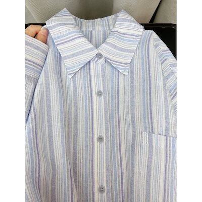 シャツ 長袖 2024 秋 新ブラウス 韓国ファッション ストライプシャツカーディガン