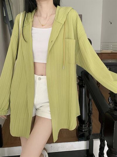 シャツ 長袖 2024 秋 新フード付きサンスーツジャケット 女性 カーディガン トップス