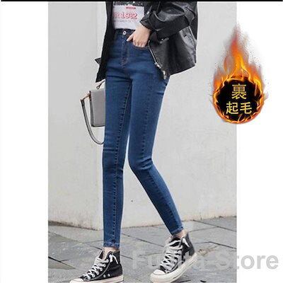 デニムパンツ レディース 裏起毛 秋冬 スキニー スキニーパンツ ハイウエスト ストレッチ 防寒 着痩せ カジュアル 美脚 秋冬 暖かい