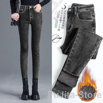 デニムパンツ レディース 裏起毛 春夏 スキニーパンツ ハイウエスト ストレッチ 防寒 着痩せ カジュアル 美脚 秋冬 暖かい