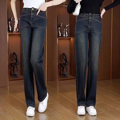 レディース 大きいサイズ デニムパンツ 秋冬新作 カジュアル ゆったり ストレートパンツ 裏起毛 着痩せ ロングズボン