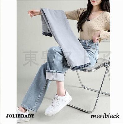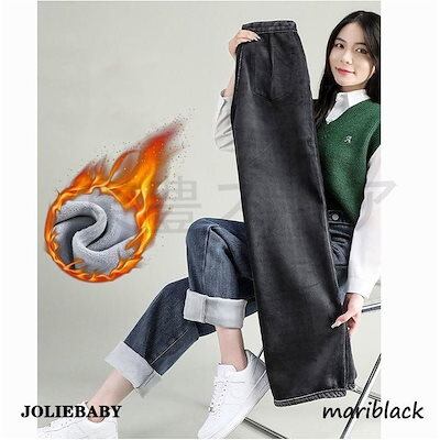 レディース 秋冬新作 付き 体型カバー ウ 美尻 ゆったりストレート ジーンズ ワイドデニムパンツ 裏起毛 寒さ対策