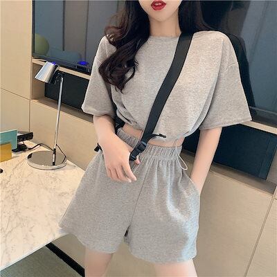 2点セット着痩せ オシャレセットアップ スカート 韓国ファッション スウェット上下セット体型カバー