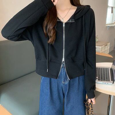 【2枚購入で 2oo円OFF!】2024新作 シンプル 可愛い パーカー アウター 百掛け 運動 スウエット パーカー ショット丈 薄手 パーカー 大きめサイズ