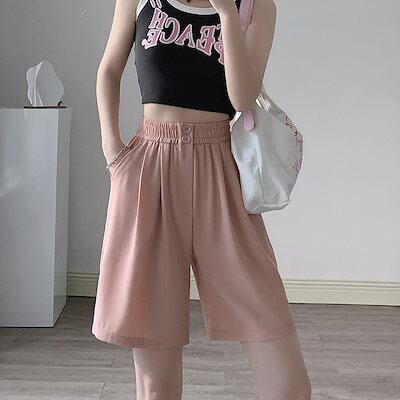 2024新作 韓国ファッション 短パン ラックスパンツ 接触冷感 夏服 ワイドパンツ シンプル 大きめサイズ 短パンレディース