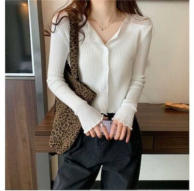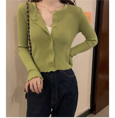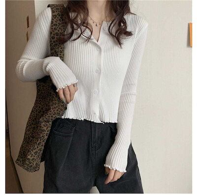 ジャケット トップス 韓国ファッション カーディガン ベーシックニット ニットカーディガン 女性2021新しい 秋アウター ハイウエスト長袖 ボタン付きトップ タートルネック タートルネック韓国ファッ