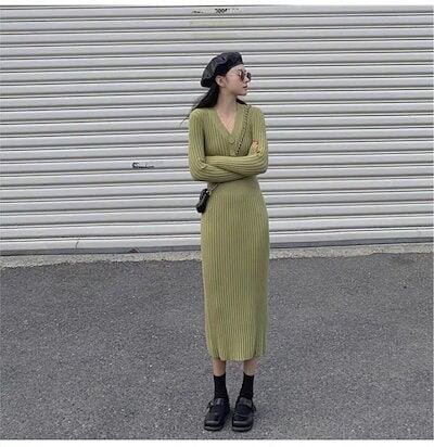 ニットワンピース2023年秋冬新作ファースカートロングコートウエストワンピースニットワンピース冬のワンピース