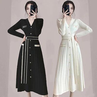 ニットワンピース ロングワンピース ワンピース 秋冬 気質 着痩せ おしゃれ