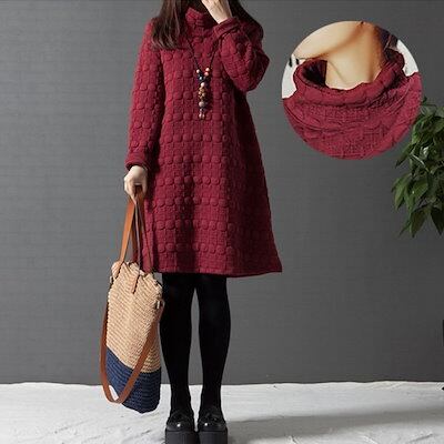 4colors 秋冬ワンピース着痩せビッグサイズでゆったり厚手の長袖ワンピース冬のワンピース