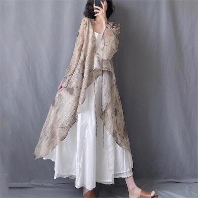 2枚購入で 2oo円OFF!ロング レディース uvカットカーディガン シアーパーカー ブルゾン レディースアウター シースルー ボリューム袖 紫外線対策 シフォンブラウスジップアップ シアーブルゾン