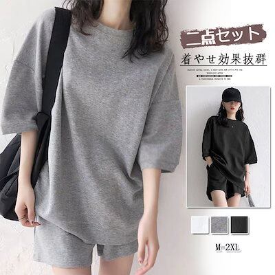 【2枚購入で 2oo円OFF!】2024夏 カジュアル おしゃれ 二点セット 薄手 ゆったり 着痩せ セット Tシャツ 短パン ルームウェア 韓国ファッション おしゃれヨガウェア涼しく楽ちんセットアッ