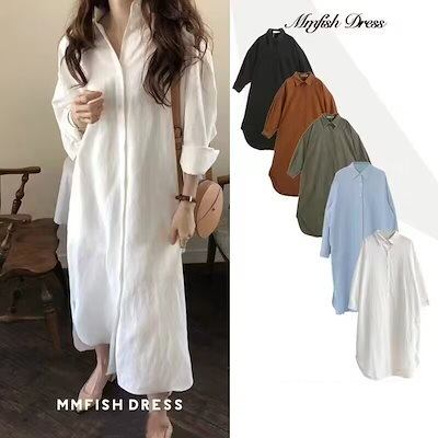 7色 可愛い 2024新作 怠惰な風 オフィス ブラウス ロング丈 百掛け ブラウス ワンピース 通勤 トップス ワイシャツ 韓国ファッション レディース 服 紫外線対策 ロンt シフォンブラウス