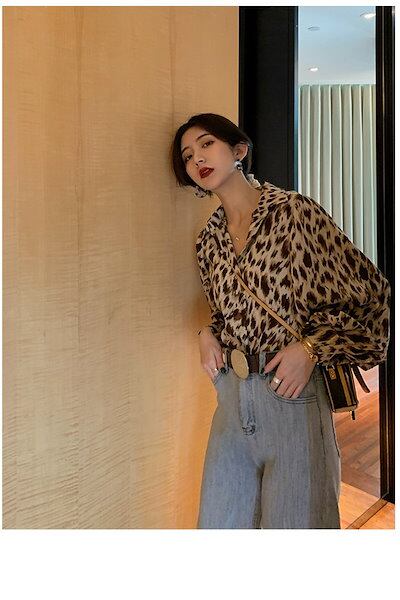2024新作 豹柄 シンプル レトロプリント 長袖インナーアウター ブラウス可愛い トップス お肌に優しい ブラウス 韓国ファッション レディース 服 紫外線対策 ロンt シフォンブラウス