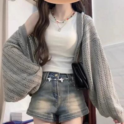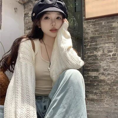【3日間発送】 2024 新作 秋レディースカーディガン薄手 透かし編み 紫外線対策 ニットブラウス ゆったり気だるい風日焼け止めカーディガンストールコート