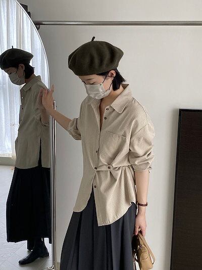 【3日間発送】 2024 新作 秋今っぽシアーシャツ ストライプの長袖シャツ女性秋の新しい不規則なボタンアップブラウスシャツ