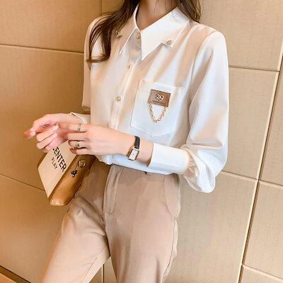 【3日間発送】 2024 新作 秋ブラウス 白シャツ 秋 新しい OL チェーン ブラウス 尖った襟 シフォンシャツ