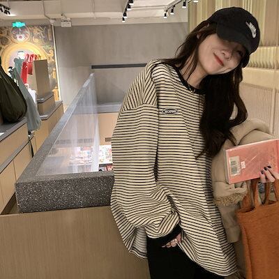 2024 秋 新 パーカー パーカー ゆるい カジュアル 縞 春秋の薄手のゆったりした新モデルです長袖 トップス トップス レディース 春 秋 韓国ファッション