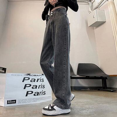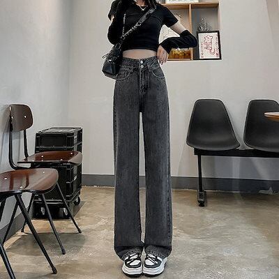 2024 初秋 デニムパンツ ニッチデザインダブルボタンスーパーハイウエストワイドレッグジーンズ 女性の純赤緩い百黒とグレーのストレートドラッグ長いズボン 韓国ファッション