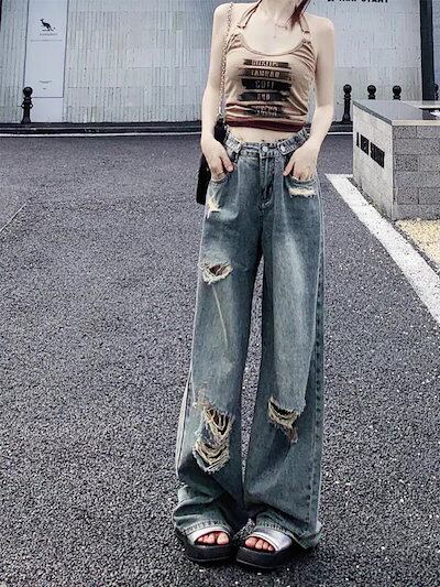 2024 初秋 デニムパンツ デニムパンツ ボトムス ジーンズ ファッション系スタイル ゆるダボ ジーンズ シルエット カジュアル メンズライク 韓国ファッション