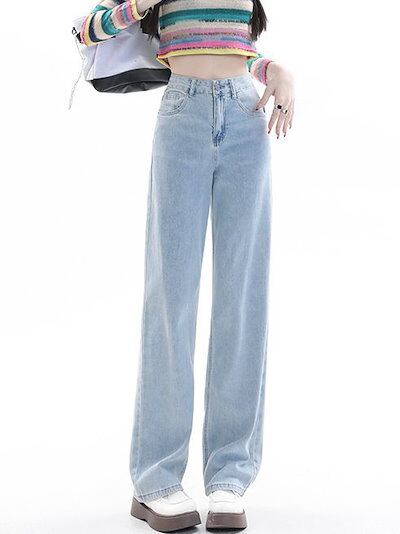 2024 初秋 デニムパンツ パンツ デニム ジーンズ ワイド ストレート ハイウエスト 脚長効果 美脚効果 細見え カジュアル おしゃれ かわいい シンプル レディース お出か 韓国ファッション