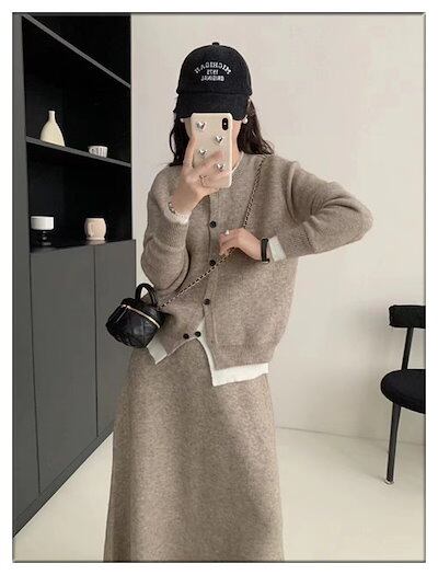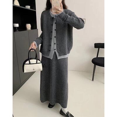 【2枚購入で 2oo円OFF!】人気なリプニット 秋冬 新作 セーター ニット フェイクレイヤード 上下セット 二点セット レディースセットアップ ニット アウター