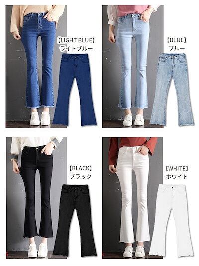 美脚 デニムパンツ レディース スキニー フレアパンツ 韓国ファッション デニムパンツ 韓国 九分丈 パンツ 着痩せ デニム ジーンズ レディース クロップドパンツ ストレート 裾フリンジ ズボン 春
