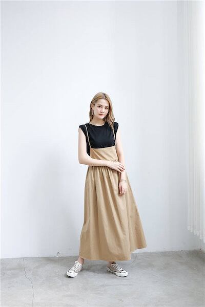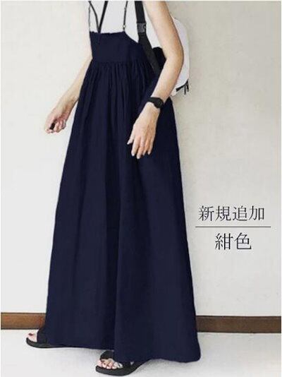 楽天1位入賞 ジャンパースカート サロペット キャミソールワンピース レディース フレア プリーツ ロングワンピース 春 夏 オールインワン ロン