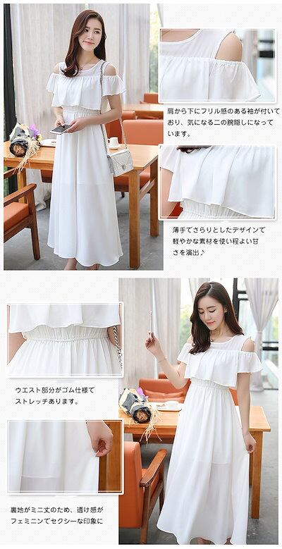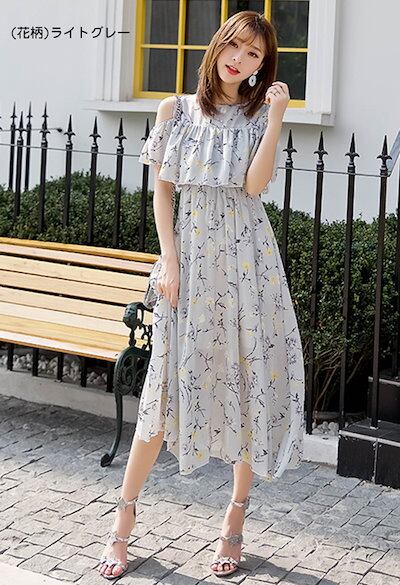 5/31日迄P5倍マキシワンピース オフショルダー 旅行ワンピ 肩出しワンピース サマーワンピース リゾートワンピ ボヘミアン シフォンワンピース ロング丈 フレアワンピース 花柄 純色 フリル